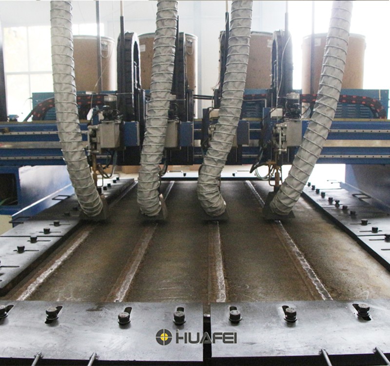華飛堆焊焊接設備由龍門焊專機、埋弧焊電源、自動送絲機、水冷焊槍、內循環水冷機、水冷循環平臺、煙塵凈化器(可選)等共同組成。作用是在復合鋼板上用耐磨板專用的一種保護焊絲通過堆焊專機在普通碳鋼板表面均勻的堆焊一層耐磨的合金,華飛數控可以做到耐磨層均勻覆蓋,周邊厚度誤差極低。 使用時將工件放置于托架上,通過焊臂操控焊嘴對工件進行直線焊接工作,可以上下,水平不同方向進行。本設備也可同時焊接多個縫隙,方便效果好。
