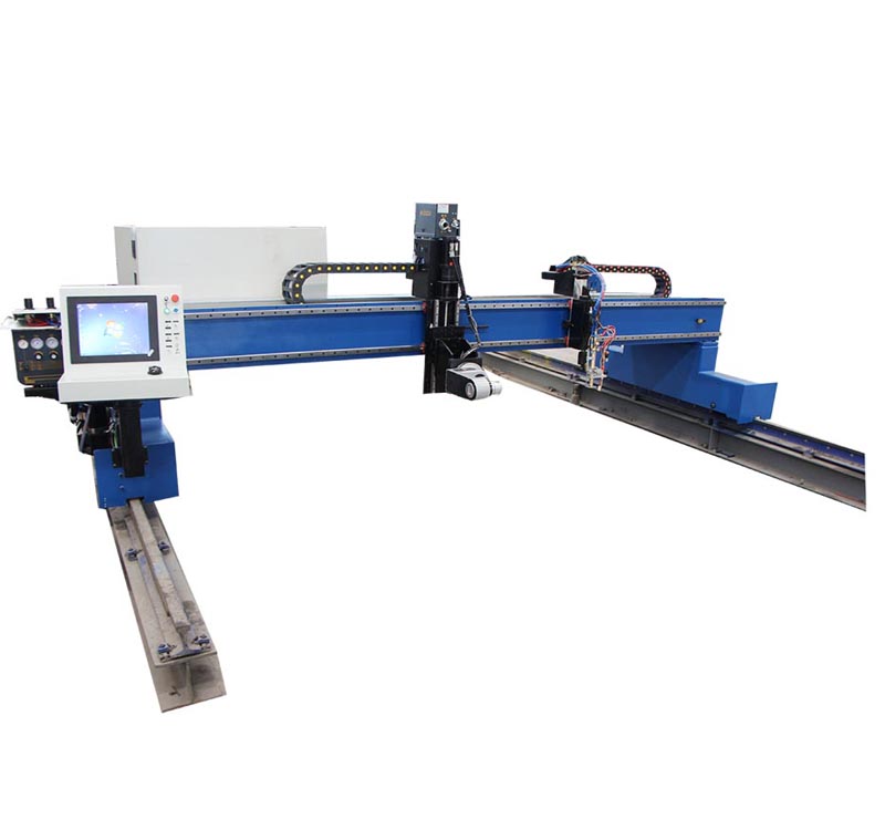 該型數控坡口切割機為龍門式結構,橫向跨度有3m、4m、5m、6m、8m等多種規格,均采用雙邊驅動,雙軸芯直線導軌,標配為橫向軌距4m,有效切割范圍:3.2m,縱向軌長可定制,單火焰或單等離子坡口切割方式,帶自動點火;也可增配成火焰與等離子兩用坡口切割方式。